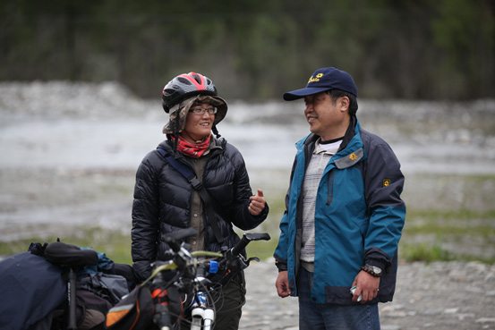 與騎行客親切交談
